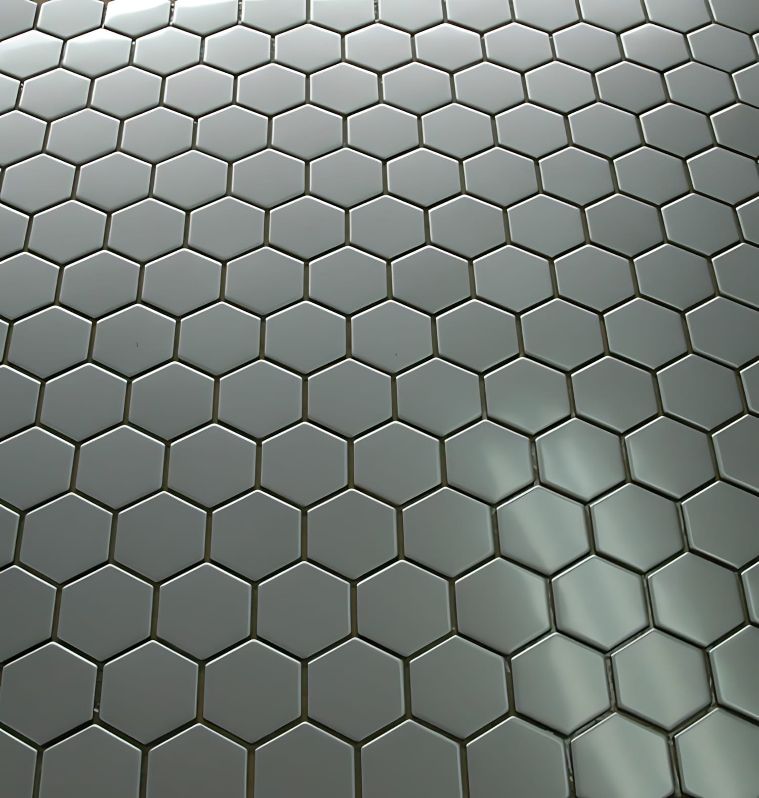 Les carreaux ALLOY en acier inoxydable ont fait l'objet d'une finition semi-réfléchissante unique. Leur couleur gris clair et leur opacité donnent un effet fantomatique intriguant. Leur texture douce et réfléchissante est à mi-chemin entre celle de notre finition brossée et de notre finition miroir.