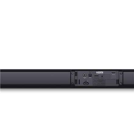 Autres caractéristiques : 2 haut-parleurs large bande ; Contrôle avec la télécommande du téléviseur via HDMI ARC – CEC ; Fonctionnement à partir de la télécommande ou des touches directes de l'appareil ; Égaliseur pour différents modes sonores ; Montage mural ou utilisation sur table ; Grille avant en métal avec finition noir mat ; Indicateur de source LED