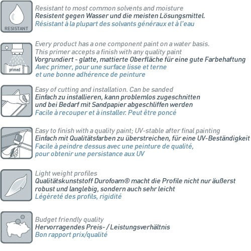 1 carton complet 10 corniches moulures cimaises 20m orac decor cb530 basixx : découvrez une solution de qualité, pensée pour répondre aux exigences de décoration moderne. Ce produit s’adapte parfaitement à différents styles d’intérieur et garantit à la fois esthétique, durabilité et simplicité d’entretien. Pour toute question sur ce produit, n’hésitez pas à nous contacter via le bouton « Poser une question » ci-dessus. Fabricant: Orac Decor Numéro d'article: CB530-box-10 Collection: BASIXX Style: intemporel / classique Matériau: Durofoam® Longueur (cm): 200 Propriétés du matériau: extrêmement léger Fabricant: Orac Decor Pays / région de production: Belgique Approprié pour: intérieurs Couleur de base: blanc Adhésif approprié: Decofix Pro (intérieurs et joints), DecoFix Power (pièces humides et joints) Version: pas flexible Type de produit : Corniche Nombre de moulures par carton (pcs): 10 Longueur totale des moulures par carton (m): 20 Largeur (cm): 1.5 Hauteur (cm): 2.7 Modèle no.: BASIXX | CB530-box-10 Collection: BASIXXTitre du produit