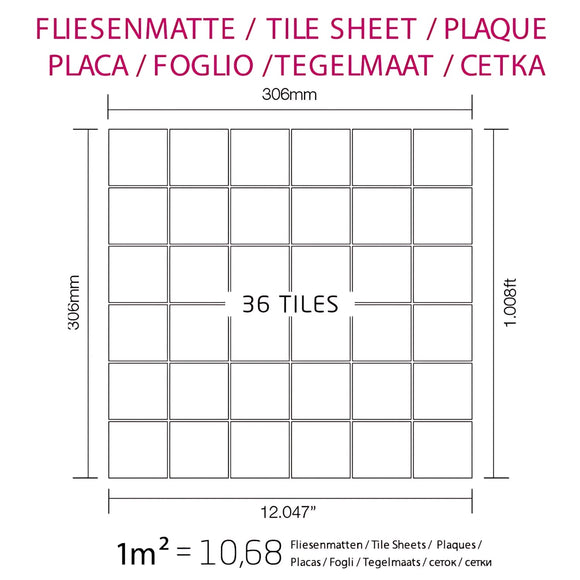 Pièces / Tesselles: 36 Pcs. par Plaque / 50 x 50 mm | 1 Paquet à 10 Plaques = 0,94 m2