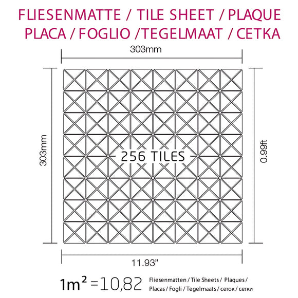 Pièces / Tesselles: 256 Pcs. par Plaque / 17 x 33 mm | 1 Paquet à 10 Plaques = 1,00 m2