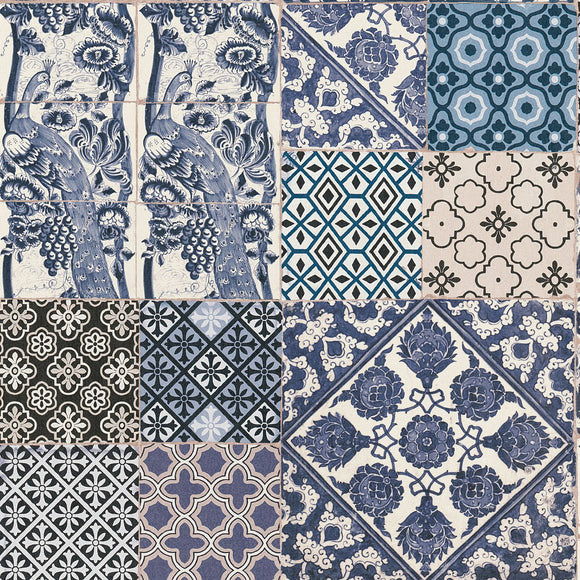 Papier peint pour cuisine et bain Profhome 369232-GU papier peint intissé légèrement texturé avec un dessin graphique mat bleu blanc-crème blanc 5,33 m2