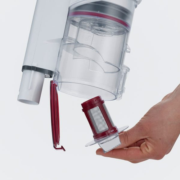 Vidange facile et sans effort du bac à poussière par simple pression sur un bouton