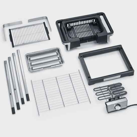 - Aucun risque de brûlure sur aucune surface, grâce au boîtier SafeTouch - Démarrage rapide du gril : de 0 à 500 °C en seulement 10 minutes - BoostZone - 500 °C pour des marquages ​​parfaits. Pleine puissance grâce à la technologie de double chauffage - Cadre de support stable avec grille de rangement - Peut également être utilisé comme gril de table - Puissance : total 3 000 W. - Couleur : acier inoxydable-noir - Dimensions de la surface de gril env. 41,5 x 24 cm (environ 996 cm²) - Câble d'alimentation : 2,00 m - Microinterrupteur de sécurité, l'élément chauffant s'éteint automatiquement lorsqu'il est retiré - Voyant LED pour l'affichage de l'état (orange = grillade, rouge = BoostZone) - Température du gril : jusqu'à 500 °C - Dimensions du produit sans support : 62 x 24 x 41 cm - Dimensions du produit avec base de support : 62 x 91 x 50 cm - Hauteur de travail env. 85 cm - Poids environ 6,5 kg - Poids brut (emballage inclus) env. 9,8 kg - Dimensions de l'emballage : 80,1 x 29,7 x 45,5 cm